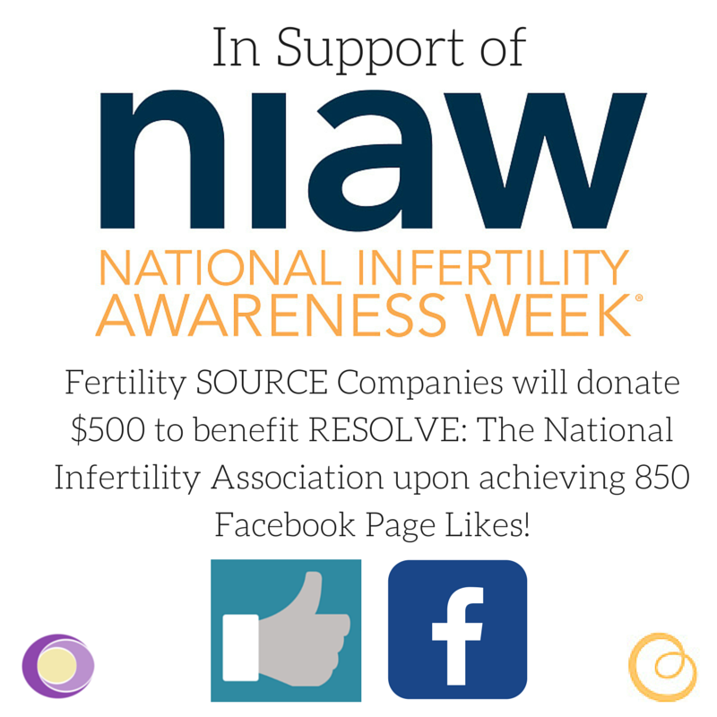 For National Infertility Awareness Week® it is Fertility Source Companies’ great honor to reach out to our foundation of partner fertility practices across the U.S. and sponsor breakfast for the patients. During the week of April 19-25, 2015, FSC will provide breakfasts to over 20 waiting rooms. In addition, Fertility Source Companies will conduct a Facebook Promotion with a goal of going from FSC’s current 793 page likes to 850 page likes. Upon achieving 850 page likes, FSC will donate $500 to RESOLVE: The National Infertility Association.